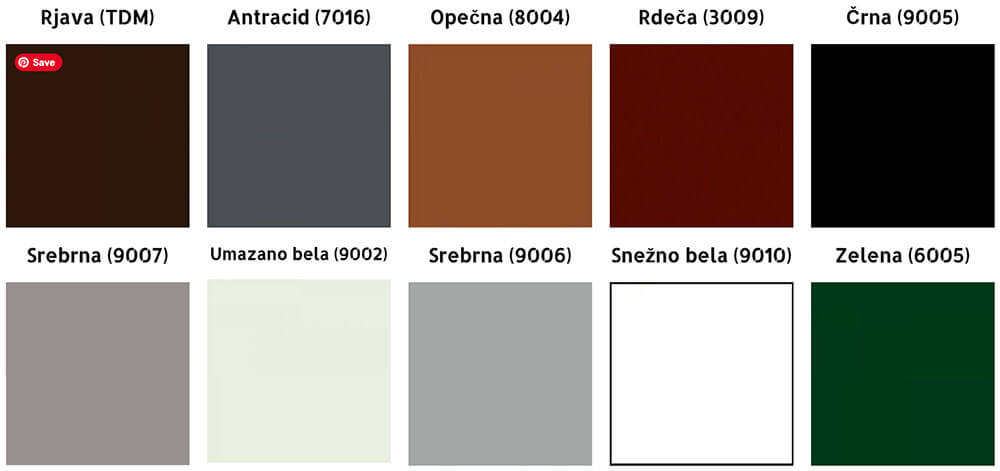 - konstrukcije so zaščitene oz. barvane z nanosom prašne barve ki je zelo dolgotrajna garantirana zaščita na zunanje vplive. Možnost tudi cinkanja.